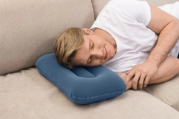 Ez a felfújható párna könnyű, és összecsukva minimális helyet foglal. Kiváló utazáshoz és kempingezéshez.