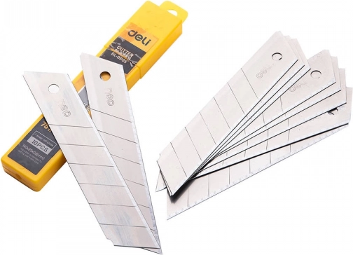 A Deli kés 25 mm-es pengemérettel ideális a precíz vágásokhoz. A csomag 10 tartalék pengét tartalmaz a hosszú távú használathoz.