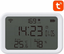 A Tuya Smart alkalmazással könnyedén hozhat létre automatizálásokat és jeleneteket – például lámpa felkapcsolása alacsony fény esetén, vagy párátlanító indítása magas páratartalomnál. Az érzékelő kompatibilis az Amazon Alexa és a Google Assistant rendszerekkel a kényelmes hangvezérléshez. A telepítés percek kérdése: csatlakoztassa a Wi‑Fi‑hez, adja hozzá az alkalmazásban, és helyezze asztalra vagy rögzítse a falra.