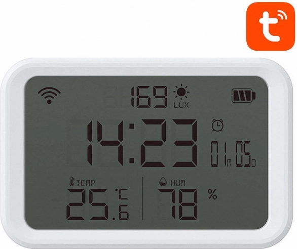 Tartsa szem előtt az otthoni klímát egy pillantással. A NEO okos érzékelő pontosan méri a hőmérsékletet, a páratartalmat és a fényerősséget, az adatokat nagy, jól olvasható kijelzőn jeleníti meg, és a 2,4 GHz‑es Wi‑Finek és a TUYA alkalmazásnak köszönhetően valós idejű adatokat biztosít. Nem hiányzik a óra, a dátum és a praktikus ébresztő sem.