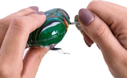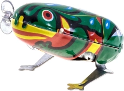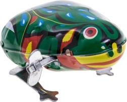 Ez az aranyos játékbéka fémből készült, szép zöld színben, és rugós mechanizmusa kulccsal húzható fel. A béka mosolyt csal minden generáció arcára. Kis méretének köszönhetően könnyedén elfér egy gyermek kezében és tökéletes vicces pillanatokhoz, például amikor egy táskában van elrejtve. Győződjön meg róla, hogy szerencse talizmánként is magával viszi!