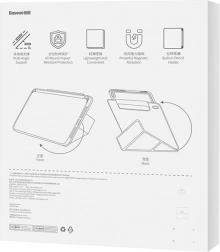 Az összehajtható előlappal könnyedén kialakíthat állványt a kényelmes gépeléshez, böngészéshez és filmnézéshez álló és fekvő módban egyaránt. Az integrált hely az Apple Pencil (1./2. generáció) vagy a Baseus Stylus számára mindig kéznél tartja a tollat. A minőségi TPU/PU felépítés ellenáll a foltoknak, kellemes tapintású, és lehetővé teszi a könnyű fel- és levételt a készülék sérülése nélkül.