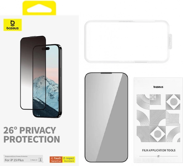Baseus adatvédelmi edzett üveg iPhone 15 Plus-hoz