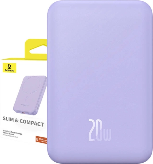 BASEUS mágneses mini powerbank 5000 mAh 20W lila