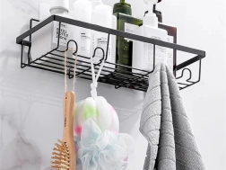 Műszaki adatok: A fürdőszobai polc két szinttel van felszerelve, amelyek könnyen a falra rögzíthetők. Erős akasztók és kiváló minőségű kivitel biztosítják a hosszú élettartamot és megbízhatóságot. Fekete színben kapható, amely modern és elegáns megjelenést ad.