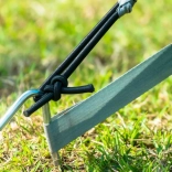 A kampós és hurkos végződés kényelmes rögzítést tesz lehetővé különféle kötelekhez és hevederekhez, felgyorsítva a sátor felállítását.