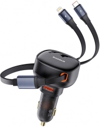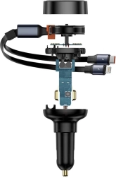 A BASEUS Enjoyment egy kompakt és megbízható autós töltő modern sofőrök számára. A két kihúzható, beépített kábel USB‑C és Lightning véggel egy külön USB porttal egészül ki, így telefonját, navigációját és fülhallgatóját is egyszerre töltheti. Az akár 60 W kimeneti teljesítmény és a népszerű gyorstöltési protokollok támogatása gondoskodik róla, hogy eszközei pillanatok alatt készen álljanak.