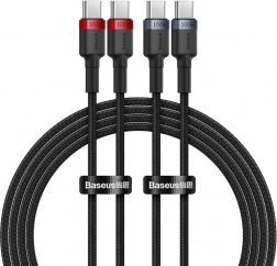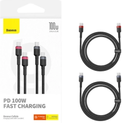 Két darab, strapabíró Baseus Cafule USB‑C – USB‑C kábel készlete, amely gyors, akár 100 W-os (PD) töltést, stabil 480 Mb/s adatátvitelt és prémium kivitelezést kínál textilfonatos bevonattal a hosszú élettartamért. A 2 m hossz és az univerzális kompatibilitás ideálissá teszi telefonokhoz, tabletekhez és laptopokhoz.