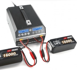 Nagy teljesítményű, megbízható kétcsatornás töltő 6S LiPo/LiHV akkumulátorokhoz, ideális drónokhoz és ipari felhasználásra. 1080 W teljesítményt, aktív PFC-t akár 93% hatásfokkal, belső ellenállás mérését, LiHV módot és több töltő szinkronizálását kínálja. G630 elosztókkal kombinálva automatikus, állapot szerinti egymás utáni töltést tesz lehetővé akár 12 akkumulátorig.