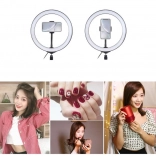 Az 5,7–9 cm széles okostelefonokhoz való integrált tartó a kör közepén helyezkedik el az egyenletes, árnyékmentes megvilágításért. Tápellátás USB-n keresztül PC-ről, hálózati adapterről vagy power bankról.