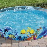 Vidám tengeri minta és a kényelmes, puha falak teszik ezt a medencét ideális helyszínné a gyerekek vízi mulatságaihoz. A robusztus PVC anyagnak köszönhetően a medence ellenáll az UV-sugárzásnak és a mindennapi igénybevételnek.