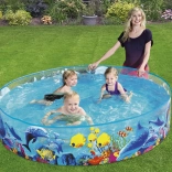 A telepítés pillanatok kérdése – elég sík felületet választani és megtölteni vízzel. A 183 cm átmérőjű és 38 cm magas kör alakú forma elegendő helyet biztosít játékhoz és felfrissüléshez a forró napokon.