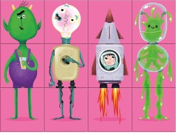 Ezekkel a fa kockákkal a gyerekek rettenetes szórakozást élhetnek át. Mind a 12 kocka tartalmaz részeket vidám szörnyecskékből vicces fejekkel, arcokkal és végtagokkal, amelyek serkentik a fantáziájukat és motorikus képességeiket.