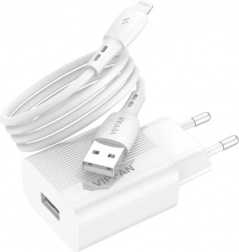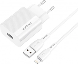 Hálózati töltő Vipfan 1x USB 2,4A és Lightning kábel fehér