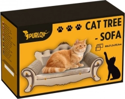 Ez a stílusos Purlov macskakanapé egyesíti a kényelmes fekhelyet és a vízszintes kaparófelületet egy praktikus kiegészítőben. A hullámkarton ösztönzi a macskát a kaparásra, míg az ergonomikus forma kényelmes összegömbölyödést és hosszas pihenést biztosít. A mini kanapét idéző klasszikus dizájn otthona dísze lesz.