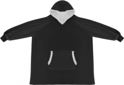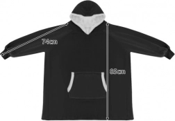 Élvezd otthon a maximális kényelmet ezzel az elegáns fekete XXL oversize takaró pulcsival. A puha flanel anyag és a plüss bélés tetőtől talpig melegen tart, míg a kapucni és a nagy kenguruzseb extra praktikusságot ad. Ideális téli estékhez, olvasáshoz, tévénézéshez vagy pihenéshez a kanapén.