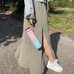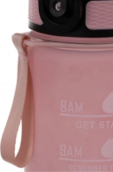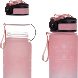Stílusos, 1 literes motivációs vizespalack rózsaszín‑kék átmenettel, amely segít betartani a folyadékbevitelt a időjelöléseknek, a űrtartalom‑skálának és a motiváló feliratoknak köszönhetően. Flip tető biztonsági zárral, puha szilikon csutorával és kivehető szívószállal a kényelmes, döntés nélküli iváshoz, szivárgásmentes a szilikon tömítésnek hála, anyaga könnyű és tartós PP matt felülettel, valamint hordozópánttal rendelkezik.