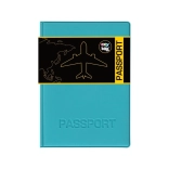 Stílusos türkiz tok 'PASSPORT' felirattal és védő szalaggal, kiemelve az utazási célt.