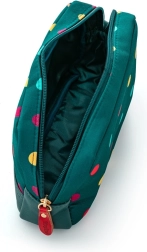 Az Emily Happy Dots kozmetikai táska tágas kialakításáról ismert, amely lehetővé teszi a kozmetikai szükségleteid könnyű tárolását és szervezését. Kompakt mérete miatt ideális utazáshoz, minden kézitáskába vagy bőröndbe belefér.