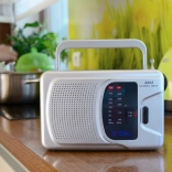 Az ANIA hordozható rádió stílusos ezüst kialakítást kombinál a funkcionalitással. Teleszkópos antennával van felszerelve a jobb vétel érdekében, és a kényelmes fogantyú révén könnyen hordozható bárhol, legyen az otthon vagy pikniken. Ideális mindazoknak, akik kiváló hangzást szeretnének élvezni, legyen szó akár otthonról, akár szabadban.