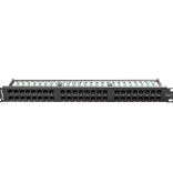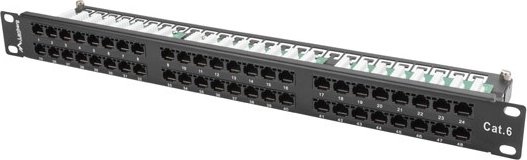 A patch panel lehetővé teszi a kábelek hatékony elrendezését és kezelését a 48 port kategória 6 révén.