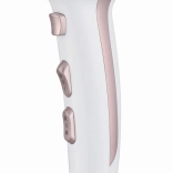A Blaupunkt hajszárító gyorsan és kíméletesen szárítja a hajadat a 2000W teljesítményű motorral és hőmérséklet-szabályozással. Elegáns dizájnja fehér és rózsaarany színekben stílust ad a mindennapi hajápolásnak.