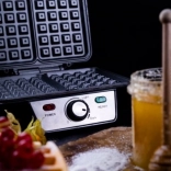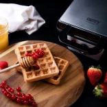 A gofrisütő használata valóban intuitív! A forró sütőlapok tapadásmentes bevonatának köszönhetően a kész gofrit könnyen kiemelheti, majd a készüléket is egyszerűen megtisztíthatja. A termosztát optimális hőmérsékleten tartja a sütést, a fényjelzők pedig tájékoztatnak, mikor áll készen a készülék a használatra és a sütésre. A fokozatmentes hőmérséklet-szabályozásnak köszönhetően 5 és 15 perc között állíthatjuk a sütési időt a felhasznált alapanyagoktól és ízlésünktől függően. A gofrisütő egyszerre két nagy gofri sütését teszi lehetővé, így biztosak lehetünk benne, hogy minden adag meleg és ropogós lesz! A készülék nagyon kevés helyet foglal, így nyaralásra is magával viheti, a függőleges tárolás lehetősége pedig helyet spórol a konyhaszekrényekben.