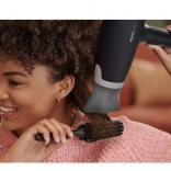 Nagy teljesítményű hajszárító 2100 W teljesítménnyel a gyors és kíméletes szárításhoz. A ThermoProtect meleg és hideg levegőt kever, és körülbelül 15 °C-kal csökkenti a hőmérsékletet. A fejlett ionizáció fényt ad a hajnak szöszösödés nélkül, a 6 hőmérséklet- és sebességbeállítás precíz szabályozást biztosít, a hideg levegő pedig segít fixálni a kész frizurát. A csomag része a keskeny koncentrátor a precíz formázáshoz.