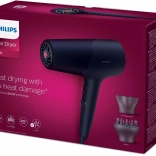 Fedezze fel a teljesítmény és a gondoskodás kombinációját. A ThermoShield technológia intelligens szenzora folyamatosan ellenőrzi a hőmérsékletet, és megakadályozza a haj túlmelegedését. A 2300 W teljesítményű motor akár 110 km/h sebességű gyors légáramot generál, így felesleges terhelés nélkül érhet el sima, gyorsan megszárított frizurát.