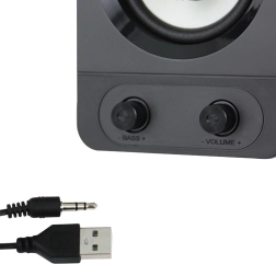 A hangszórók basszus és hangerő szabályzó gombokkal vannak felszerelve, ami megkönnyíti a hang beállítását az igényeinek megfelelően.