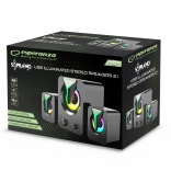 Fedezze fel a kiváló hangzást az USB RGB Soprano 2.1 hangszórókkal, amelyek tiszta és természetes zenei élményt kínálnak. Az RGB LED háttérvilágítás stílusos megjelenést kölcsönöz munkahelyének. Az összes hangszóró kimenettel és USB porttal rendelkező számítógéppel kompatibilis.