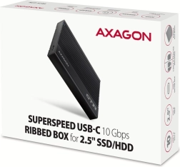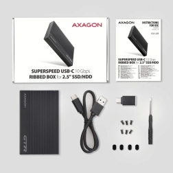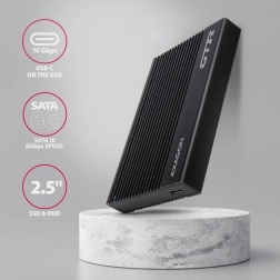 Bordázott alumínium ház az AXAGON-tól, gyors csatlakozással a 10 Gbps USB‑C interfészen keresztül 2.5"-os SATA meghajtókhoz vagy SSD-khez. A kétoldalas USB‑C csatlakozónak és a mellékelt kábeleknek köszönhetően biztos lehet a számítógéppel való megbízható összeköttetésben.