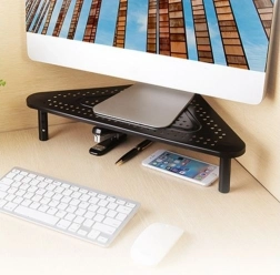 Az állítható monitor- vagy laptopállvány kiváló minőségű acél anyagból készült, és háromszög alakjának köszönhetően bármely sarokba beillik. Ez a termék a következőket kínálja: