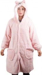 Kiváló minőségű puha anyagból készült, amely kellemes érzetet biztosít. A nagy kapucni és a tágas ujjakkal a szabadság és a meghittség érzését kelti.