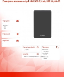 A Savio külső merevlemez tok ideális megoldás mindenkinek, aki biztonságosan és kényelmesen kíván adatokat tárolni és átvinni. A tok 2,5" HDD és SSD lemezeket támogat 7 vagy 9,5 mm magassággal, így a felhasználók személyes igényeik alapján választhatnak. A magas adatátviteli sebesség az állományok másolási és áthelyezési folyamatát hatékonnyá teszi, ami a mai gyors digitális környezetben kulcsfontosságú.