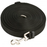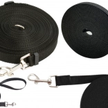 A tartós hevederszalag megbízhatóan bírja a mindennapos használatot, a tréninget és a hosszabb sétákat is. Az 5 m-es hossz nagyobb szabadságot ad a természetes mozgáshoz, miközben megőrzi a szükséges kontrollt és a biztonságos felügyeletet. Az időtálló fekete kivitel könnyen párosítható nyakörvekkel és hámokkal.
