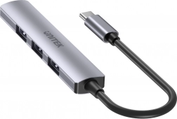 UNITEK USB‑C hub 4× USB‑A (1× 5 Gbps + 3× USB 2.0) alumínium