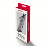 A többportos USB hub három USB 5Gbps kimenetet kínál: két szabványos USB-A portot és egy USB-C portot adatátvitelre. Az USB 3.2 Gen 1 gyors interfésszel akár 5Gb/s adatátviteli sebesség is elérhető. A hub egyszerre több külső merevlemezt is csatlakoztathat, és lehetővé teszi a telefonok és tabletek töltését akár 1.5A/5V áramerősséggel.