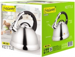 Rozsdamentes acél kanna Maestro űrtartalma 2,8 liter, amely ideális elegendő mennyiségű forralt víz elkészítésére teához vagy kávéhoz. Kiváló minőségű rozsdamentes acélból készült, modern dizájnnal és remek tulajdonságokkal rendelkezik.
