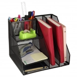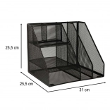 Stílusos fekete fém asztali rendező hat rekesszel, amely lehetővé teszi az irodai eszközök hatékony elrendezését. Kiválóan használható irodában és otthon is.