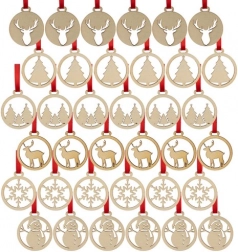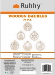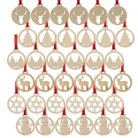 A készlet 36 fa díszt, szalagokat és zsinórokat tartalmaz, melyek megkönnyítik a felakasztást, és hagyományos eleganciát adnak dekorációdnak.