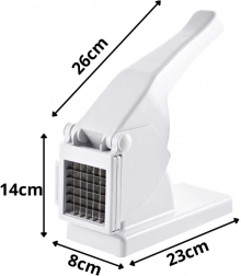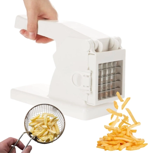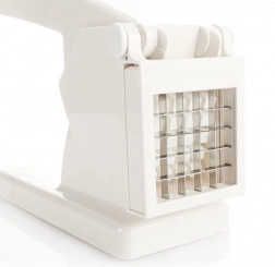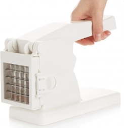 Ez a nagy és könnyű burgonyahasáb-vágó tartós műanyagból készült, és megkönnyíti a friss, házi hasábok elkészítését. Csak helyezze be a burgonyát és nyomja le a kart – a rozsdamentes acél rács pillanatok alatt egyenletes darabokra vágja a ropogós eredményért.