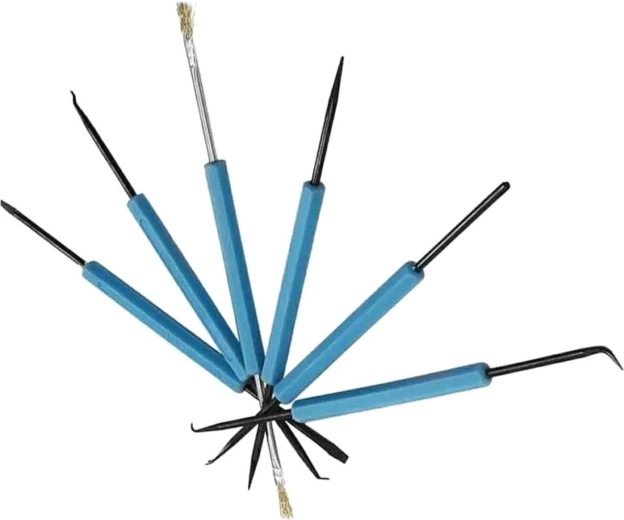 • Hat szerszámból álló készlet elektronikai alkatrészek tisztításához és kezeléséhez.