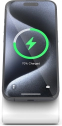 Dobd fel az íróasztalod vagy az éjjeliszekrényed egy stílusos, 2 az 1-ben vezeték nélküli töltőállvánnyal. A MagSafe mágneses felület biztonságosan rögzíti az iPhone-t, és stabil, akár 15 W töltést biztosít, míg a második felület kényelmesen tölti a Apple AirPods fülhallgatót, vezeték nélküli töltést támogató tok esetén akár 5 W teljesítménnyel.