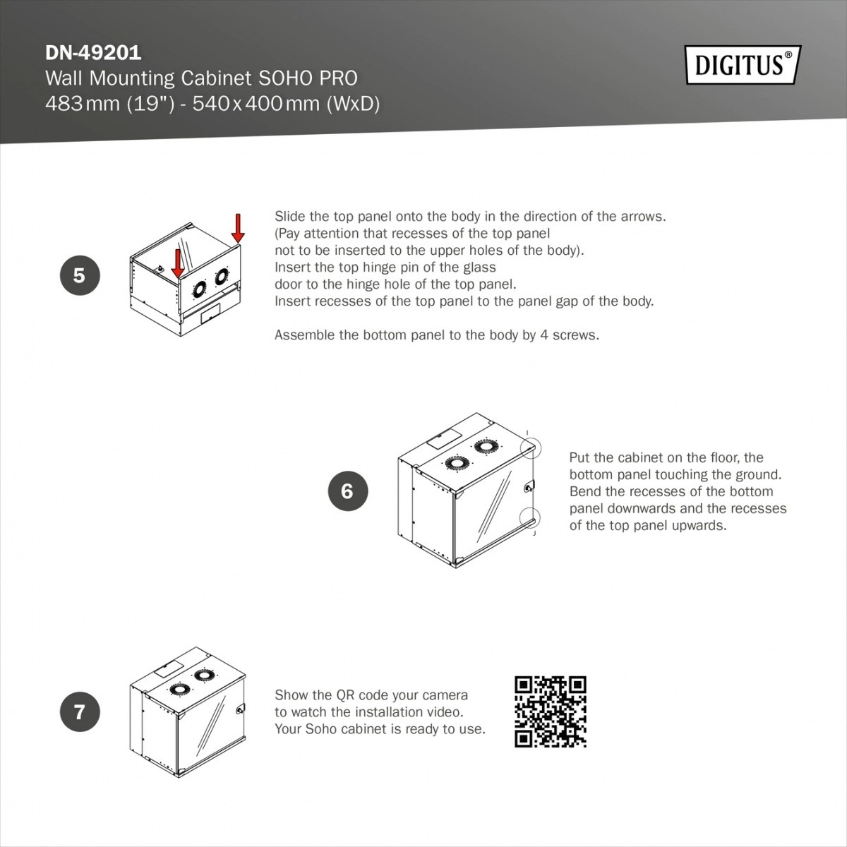 A DIGITUS SOHO PRO 19" fali szekrény ideális kis szerverhelyiségekbe, irodákba és otthoni hálózatokhoz. A stabil acélváz (1,1–1,5 mm) porszórt bevonattal garantálja a tartósságot és a hosszú élettartamot. Az első üvegajtó zárral és akár 200°-os nyitási szöggel kényelmes hozzáférést biztosít a berendezésekhez.