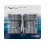 Két csatlakozóból álló teljes szett a pumpa és a medence csatlakozásához, minden szükséges része benne van.
