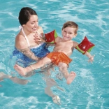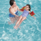 A Bestway felfújható úszókarok ideálisak úszni tanuló gyerekeknek. A két különálló légkamra megbízható felhajtóerőt biztosít, míg a puha és könnyű PVC nem korlátozza a karok mozgását. A vidám ananász minta és az élénk színek motiválják a kicsiket a biztonságos ismerkedésre a vízzel.