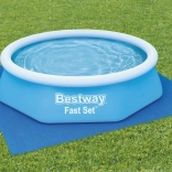 274 × 274 cm-es védő alátét medencéhez a BESTWAY márkától, amely megóvja a medence alját a mechanikai sérülésektől, javítja a hőszigetelést, és csökkenti a vízbe hordott szennyeződések mennyiségét belépéskor. Tartós, könnyen tisztítható anyagból készült, amely sok szezonon át szolgál.