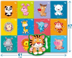 Összeállítás után a puzzle mérete 61x47 cm, ami ideális méret a padlón vagy asztalon való játékhoz. Kiváló módja annak, hogy a gyerekek megismerjék az állatokat a világ minden tájáról.