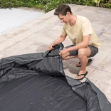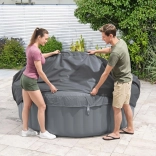 A szerelés gyors és intuitív. Az állítható, körbefutó pánt biztonsági csatokkal stabil rögzítést ad, míg az integrált cipzár lehetővé teszi a szivattyú gondtalan csatlakoztatását a fedél eltávolítása nélkül. A fedél kompatibilis a Lay‑Z‑Spa St. Moritz, Monaco, Santorini HydroJet Pro és más, 216 cm átmérőjű, kerek pezsgőfürdőkkel.